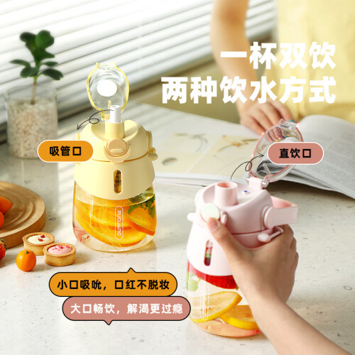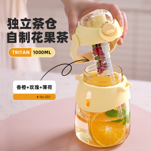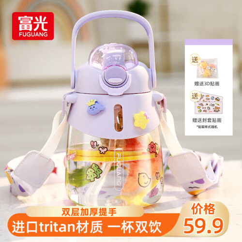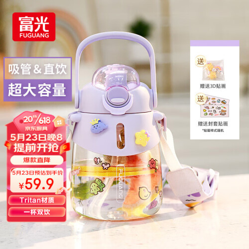 富光塑料杯水杯大容量tritan耐高温吸管便携运动水壶大肚杯子带茶仓