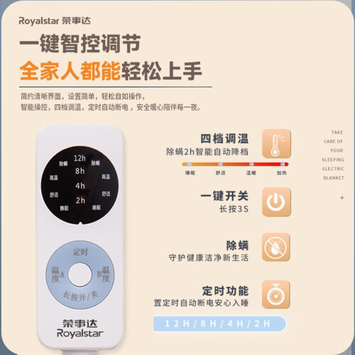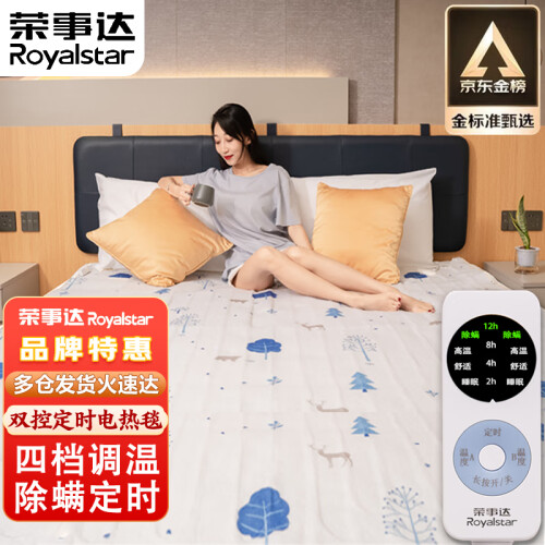 荣事达双人电热毯(1.8米*1.5米)智能定时双温双控除螨双人电褥子