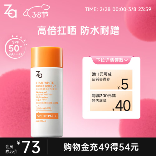 姬芮(ZA)【遇水则强 清爽保湿 】防水防晒乳防晒霜50ml SPF50+