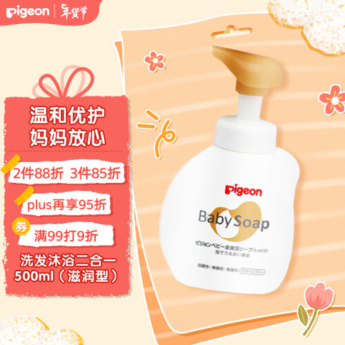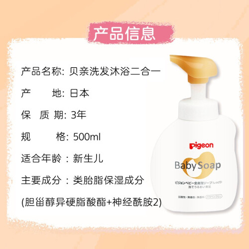 贝亲(Pigeon) 宝宝新生儿儿童滋润款洗沐二合一无添加 500ml日本原装进口