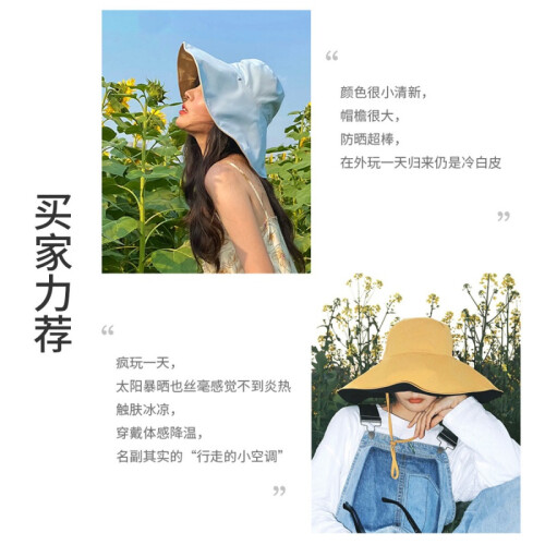 蕉下遮阳帽倍护防晒渔夫帽大帽檐防紫外线防晒帽子女防风旅游出行 石洗蓝 大帽檐倍护防晒帽