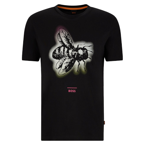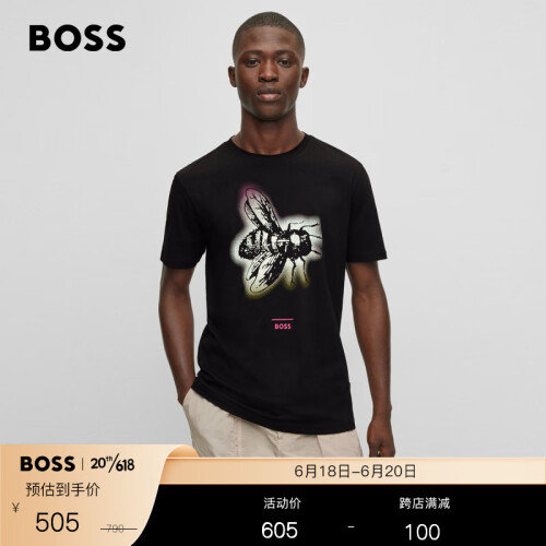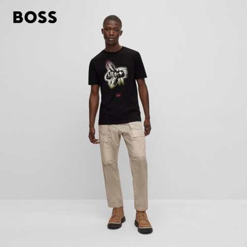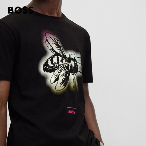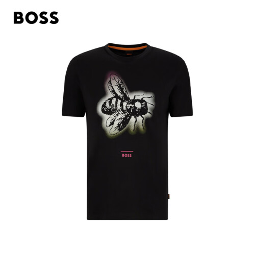 BOSS 男士系列主题艺术图案棉质平纹针织布T恤 002-黑色 EU:L