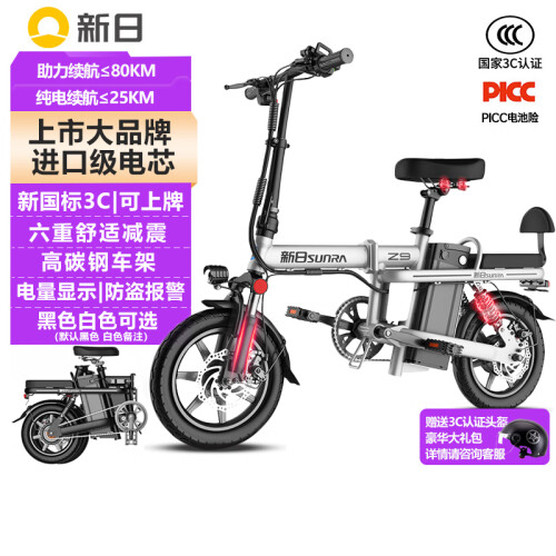 新日(Sunra)折叠电动自行车新国标超长续航代驾车锂电池助力成人电瓶车电单车 华贵白六减震-进口级8A助力80KM