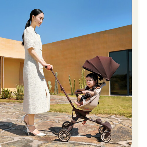 宝宝好婴儿车V7溜娃神器轻便可折叠遛娃车双向手推车可坐儿童婴儿推车 V7-奶茶色