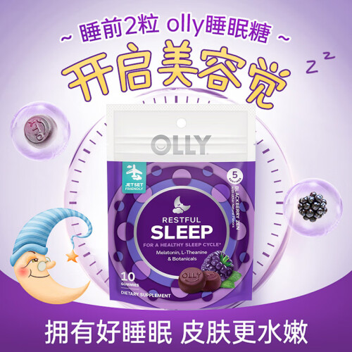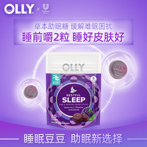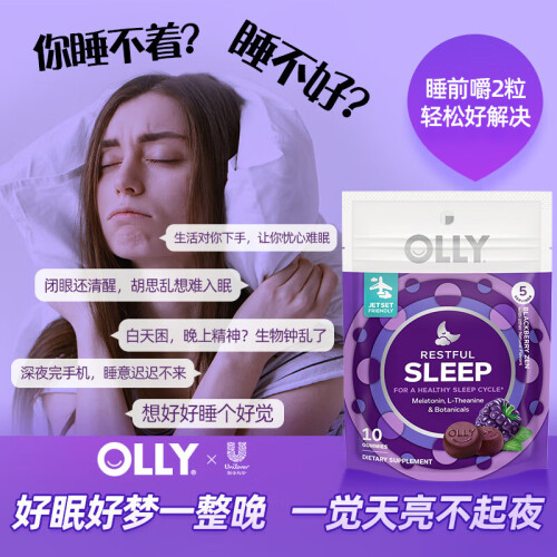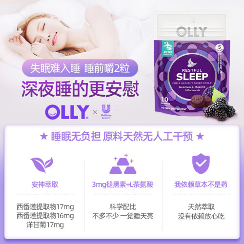美国进口OLLY睡眠褪黑素助眠软糖sleepwell茶氨酸维生素糖成人失眠安眠助眠改善睡眠倒时差 【出差旅行便携装】睡眠软糖10粒