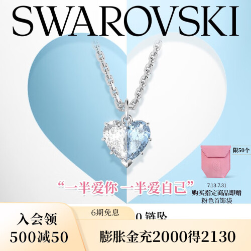 施华洛世奇(SWAROVSKI)生日礼物 施华洛世奇GEMA 520半心贴贴项链爱心生日礼物女 蓝色 5653008