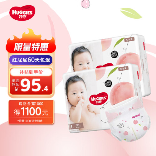 好奇Huggies 铂金装小桃裤纸尿裤 婴儿尿不湿超薄透气新生儿 L76片【9-14kg】
