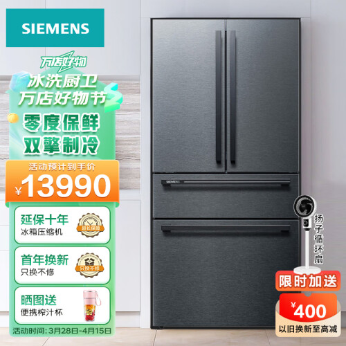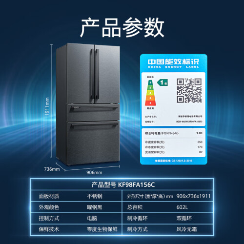 西门子(SIEMENS)602升对开多门双变频冰箱家用大容量 零度保鲜 双擎制冷 IZA净味 一级能效双循环KF98FA156C