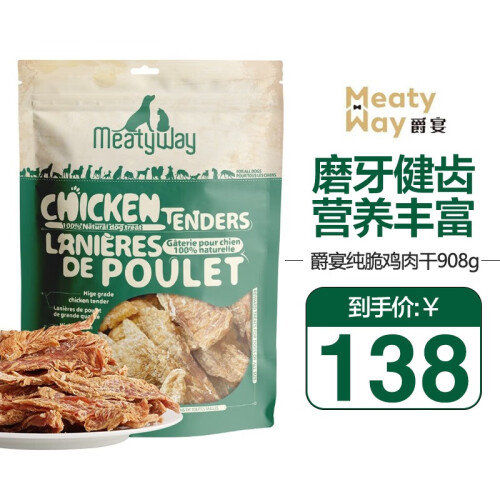 爵宴 出口欧美爵宴狗狗零食 宠物鸭肉干 成幼犬通用狗狗磨牙训练肉条 纯脆鸡肉908g