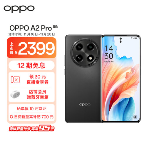 OPPO A2 Pro 天玑7050旗舰芯 67W超级闪充 超大内存 超大电量长续航 抗摔5G手机 12GB+512GB浩瀚黑