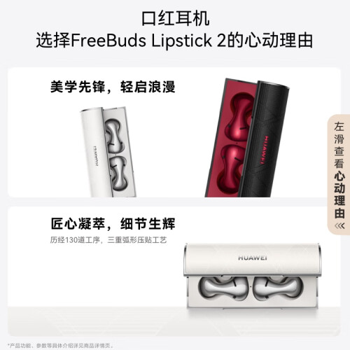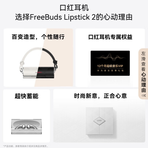 华为FreeBuds Lipstick 2 口红耳机 真无线蓝牙耳机 半入耳舒适佩戴/高清音质/超级快充 魅影黑