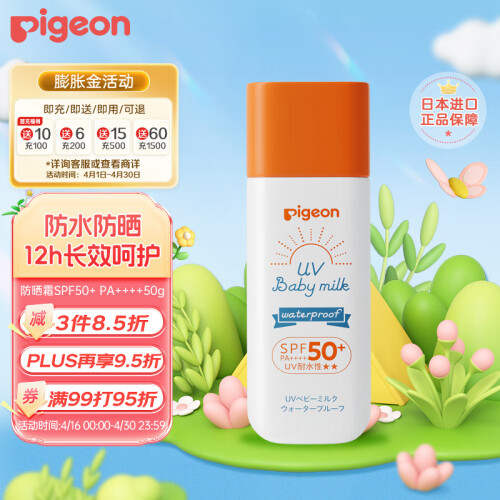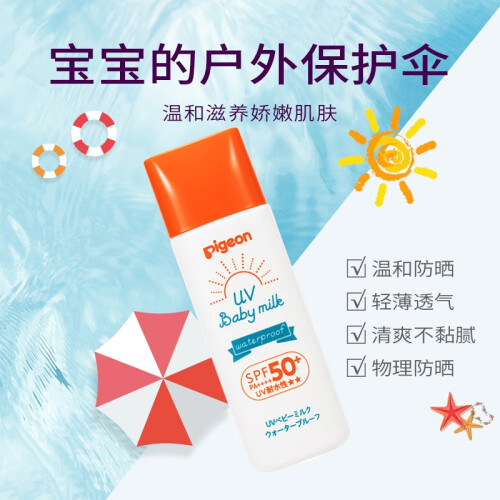 贝亲(Pigeon)儿童婴儿防晒霜SPF50+ 物理防晒 宝宝户外游玩防水防汗紫外线 50g
