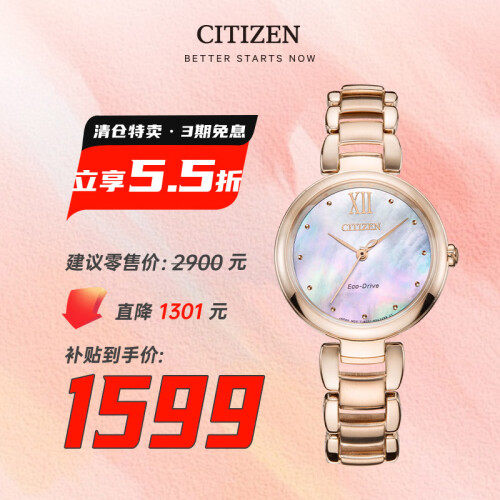 西铁城(CITIZEN)手表女日韩表L系列光动能贝母盘钢带时尚送礼物女友EM0533-82Y