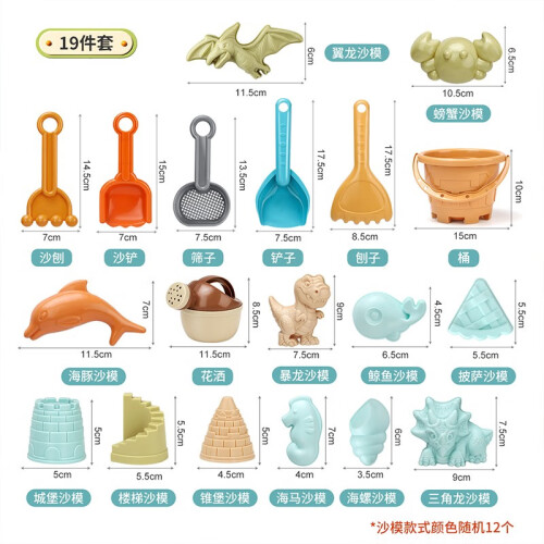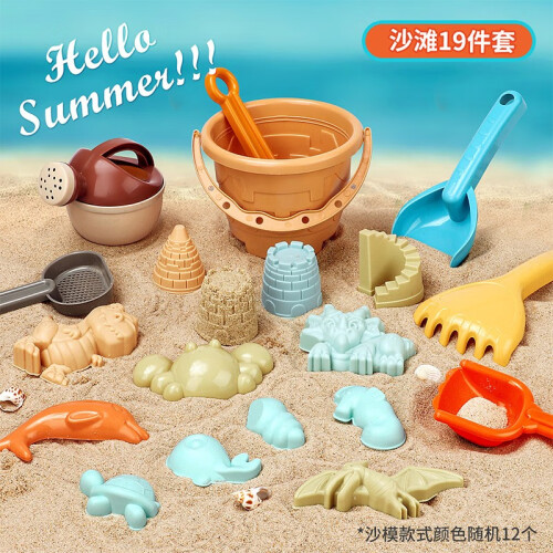 纽奇 【主推】儿童沙滩玩沙套装堆沙运沙水桶铲子宝宝户外戏水玩具 沙滩玩具19件套[模具/颜色随机]