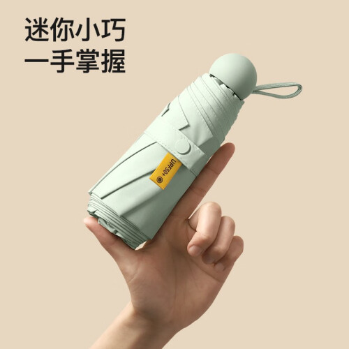 美度(MAYDU)五折迷你胶囊伞太阳伞防晒防紫外线遮阳小巧便携两用晴雨伞M5201 五折-六骨米白色