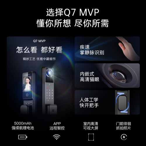 凯迪仕(kaadas)智能锁掌静脉 可视猫眼高清大屏智能门锁 Q7 MVP