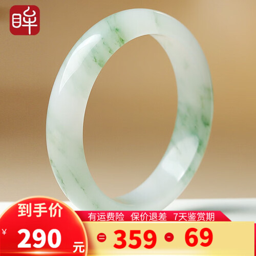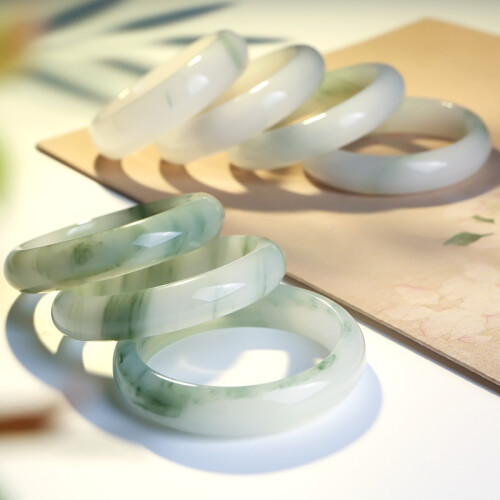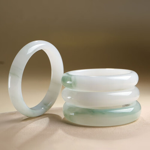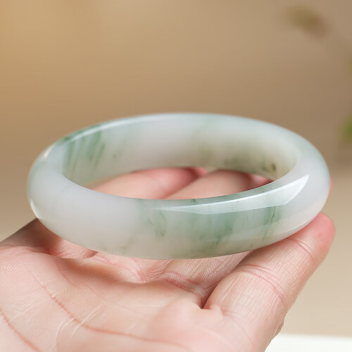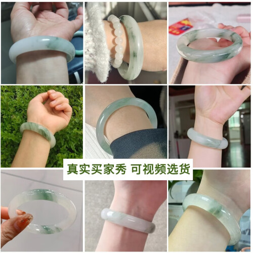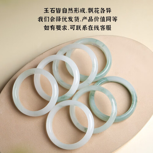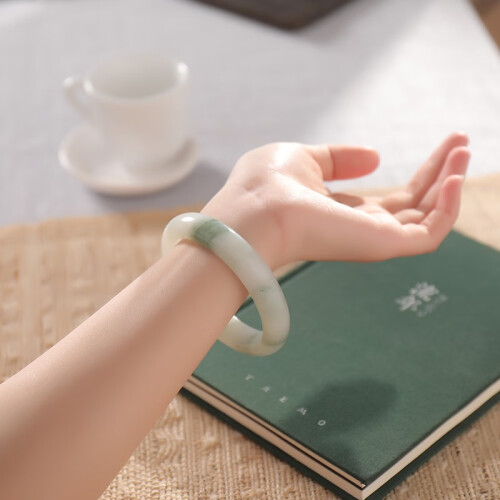 印象眸 天山翠玉手镯女款玉镯子冰翠雪翠飘花手镯送女友节日礼物 手镯 55-56圈口(尺寸详询客服)