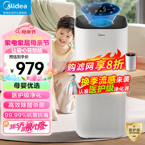 美的空气净化器“森林Air3” 高效分解甲醛除异味低噪99.99%病菌去除率净离子家用净化机净化器 F11 【母婴优选】除醛除菌F11