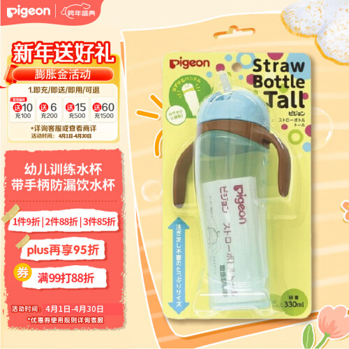 贝亲(Pigeon) 企鹅杯 330ml 蓝色 幼儿训练水杯带手柄防漏饮水杯 日本原装进口