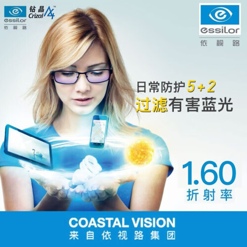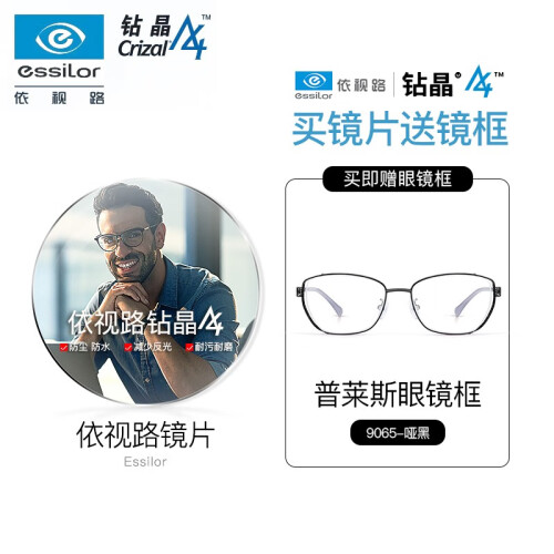 依视路(ESSILOR)镜片钻晶膜岩超薄高清耐磨耐刮划防紫外线可配近视眼镜框架 1.56非球面 钻晶膜岩(两片装)