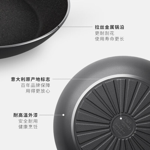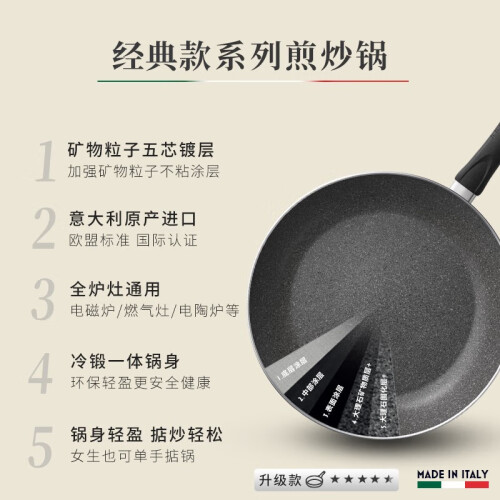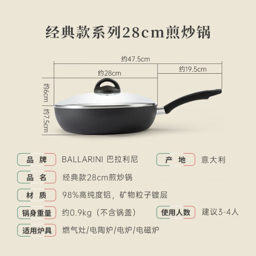巴拉利尼(BALLARINI)平底锅不粘锅煎锅麦饭石色烙饼锅家用煎牛排锅电磁炉通用锅具 原产-煎炒锅 28cm