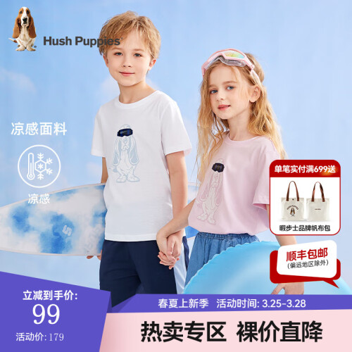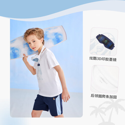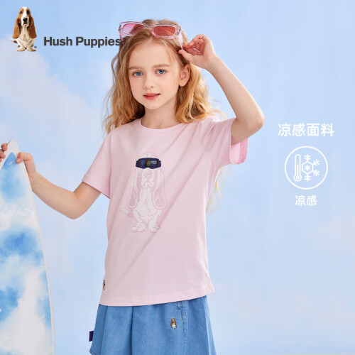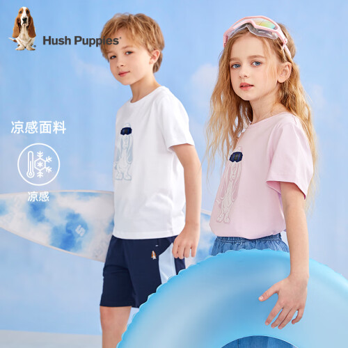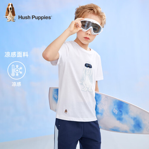 暇步士(Hush Puppies)童装儿童夏季短袖夏季新款男女大童时尚印花舒适短袖圆领衫 本白 130cm