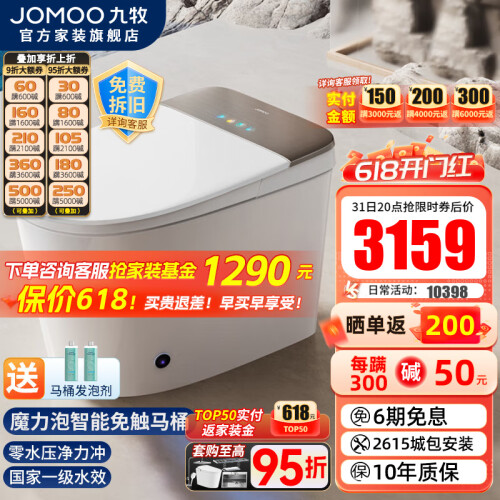 九牧(JOMOO)智能马桶一体机自动翻盖无水压带水箱带泡沫盾脚感冲水坐便器 新款零压自动翻盖魔力泡S770 400坑距(390以上选择)