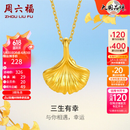 周六福(ZLF) 黄金吊坠女款5D硬金银杏足金挂坠三生有杏 定价 单吊坠