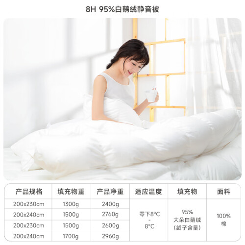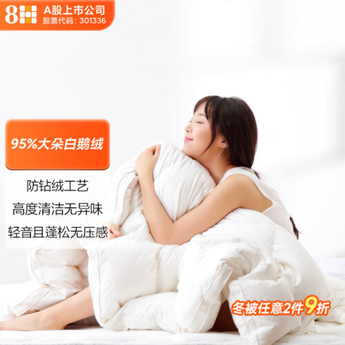 8H95%大朵白鹅绒Y1双人加厚防钻绒羽绒被芯 冬被1700g220*240cm白色