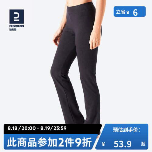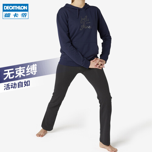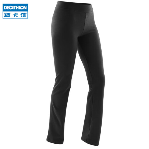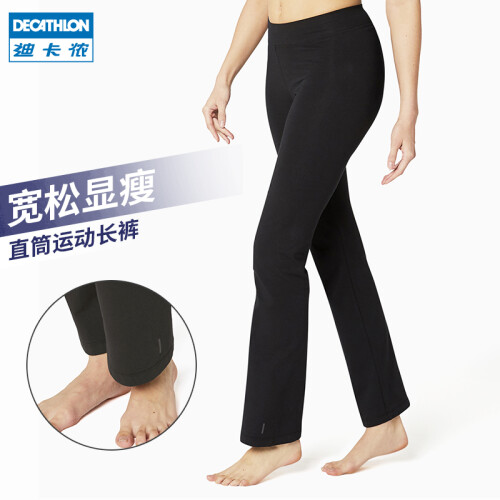 迪卡侬(DECATHLON)运动裤女裤春秋宽松大码棉质休闲裤修身直筒阔腿长裤GYPWL 经典款黑色(松紧腰头无抽绳) S