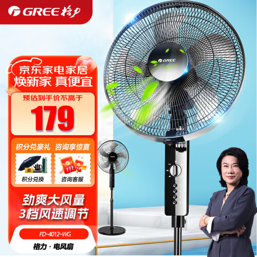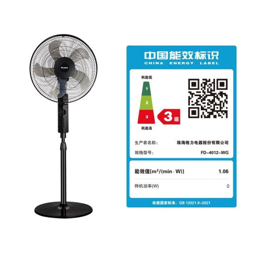 格力电风扇静音大风量落地扇客厅卧室立式节能轻音机械三级能效电风扇办公室宿舍家用风扇 FD-4012-WG
