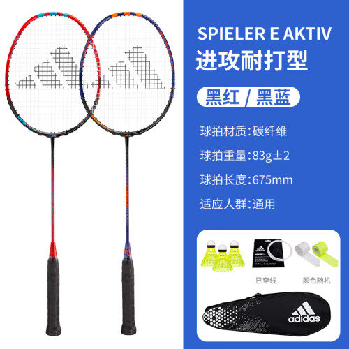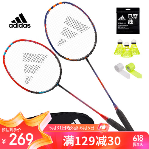 阿迪达斯 (adidas)羽毛球拍双拍全碳素球拍对拍4U超轻专业进阶型训练拍2支装MC0238