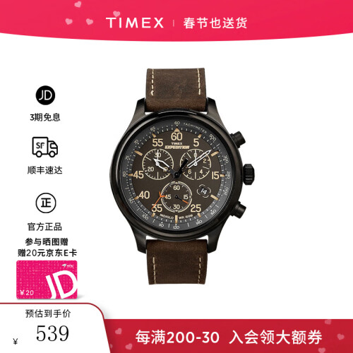 天美时(TIMEX)手表男士 远征欧美表夜光户外运动三眼石英腕表送男友生日礼物 T49905