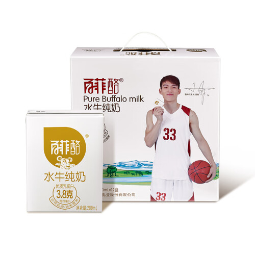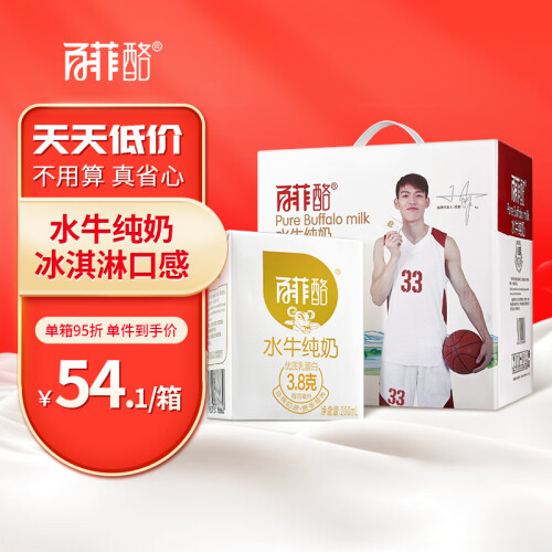百菲酪水牛奶纯牛奶 3.8g优质乳蛋白宝宝爱喝200ml*12盒送礼盒装