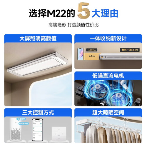 邦先生【颜值TOP 高端焕新】电动晾衣架隐形晾衣杆米家智能超薄 M22C白色【一体收纳+大屏+除菌】