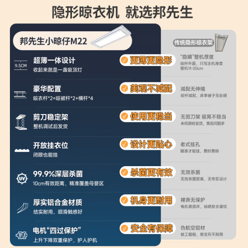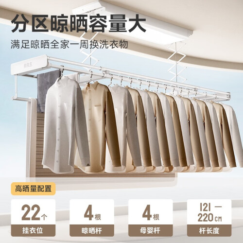 - 邦先生(Mr.Bond)【圆润机身 衣被同晒】电动晾衣架智能内嵌晾衣(不支持囤货) M1T【衣被同晒+轻抬上升+语音】