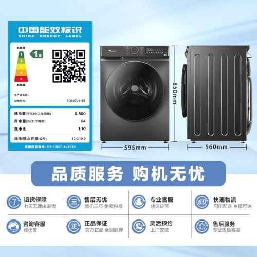 小天鹅(LittleSwan)滚筒洗衣机全自动 10公斤大容量 1.1洗净比 银离子除菌 智能彩屏冷水洗 变频 以旧换新 TD100V615T 洗烘一体机 蒸汽柔烘 空气洗