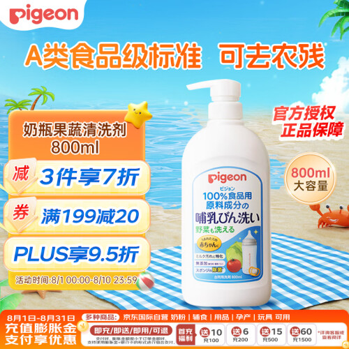 贝亲(Pigeon)奶瓶果蔬清洗剂 植物性清洁力强 易清洗无残留800ml 日本原装进口