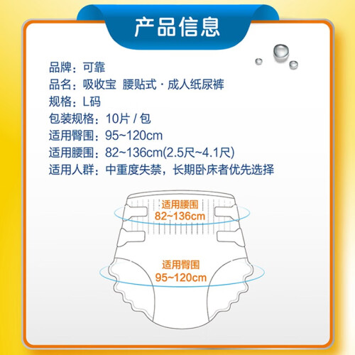 可靠(COCO)吸收宝成人纸尿裤L10片(臀围95-120cm)老年人孕产妇尿不湿