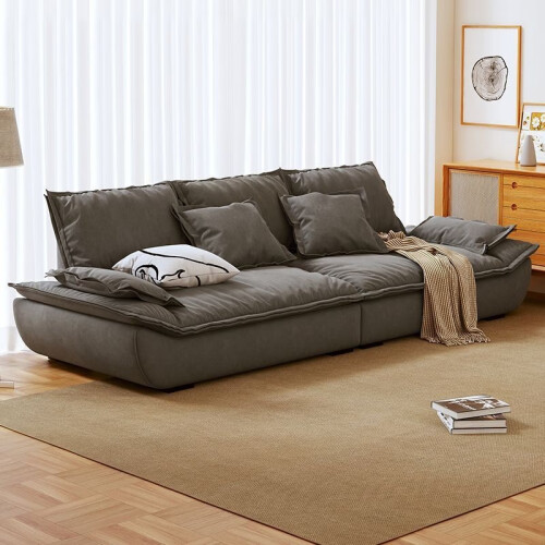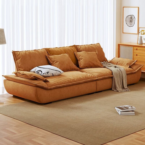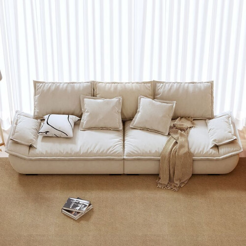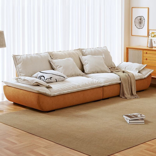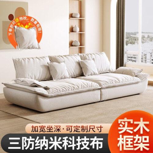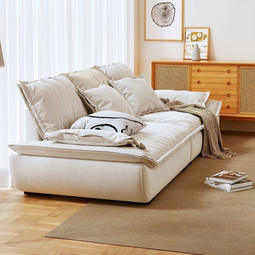骁诺意式简约科技布艺沙发客厅小户型三人位直排奶油风网红帆船沙发 米白色【带抱枕】 双人位165CM