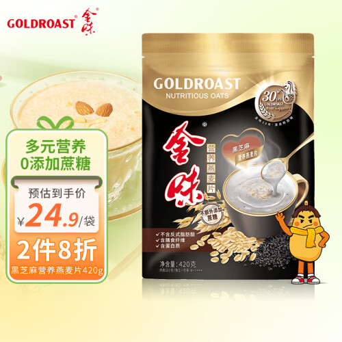 金味黑芝麻即食燕麦片 无添加蔗糖 营养饱腹 早餐代餐食品 420g