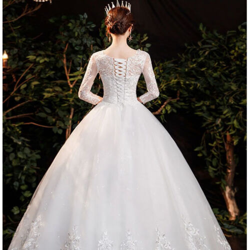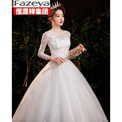 恒源祥集团旗下彩羊【轻奢上新】长袖主婚纱2022新款新娘结婚显瘦法式婚纱礼服气质有袖披肩裙春秋齐地 白色下单头纱883 S