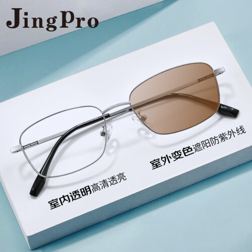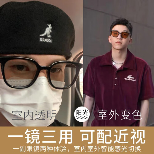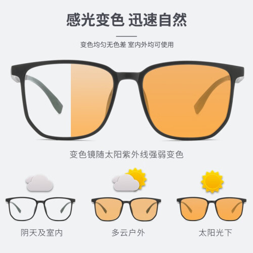 镜邦近视眼镜可做度数时尚变粉变蓝变茶色镜框男超轻TR大黑框显脸瘦 31306黑银 配1.56变茶