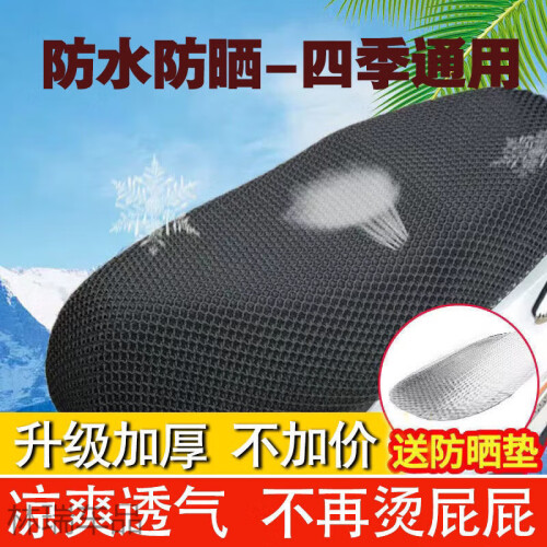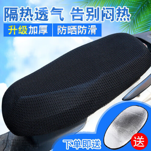 润华年电动车踏板车坐垫套防晒防水隔热垫摩托车坐垫电瓶车网套四季通用 双层加厚[3D蜂窝透气网套]