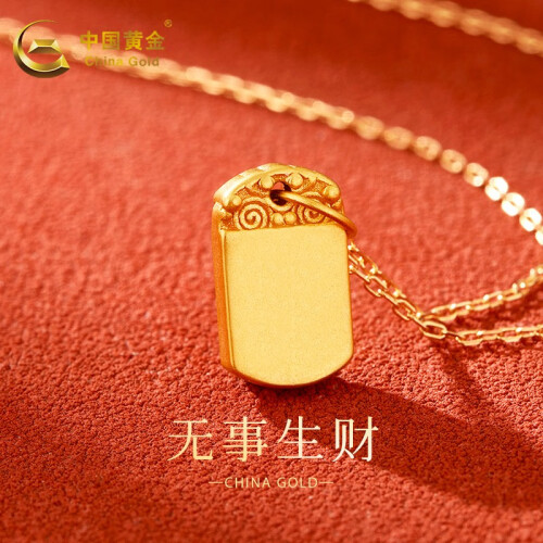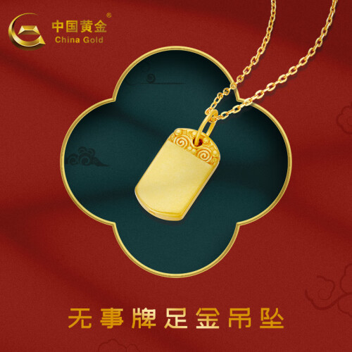 中国黄金(CHINA GOLD)黄金吊坠平安无事牌吊坠国风古韵女士挂坠送女友送老婆生日礼物