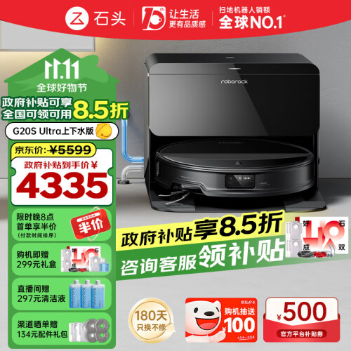 石头【国家补贴】 G20S Ultra 扫地机器人扫拖一体 扫拖洗烘一体机 自动集尘热水洗拖布烘干补水擦地拖 【自动加水】G20S Ultra上下水版