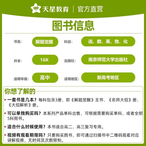 2025天星教育 高考解题觉醒 高中高考大招讲义复习资料练习题 高三模拟卷 学过石油的语文老师真题 语文数学英语王羽物理一化儿化学 2025【语数英物化】5册