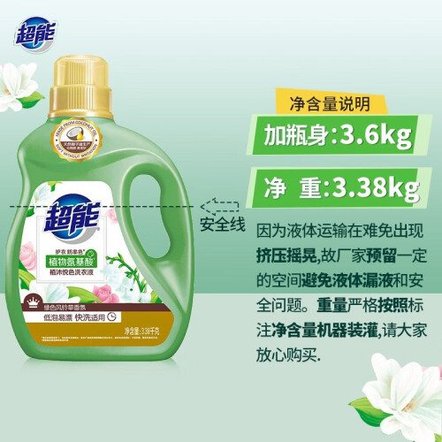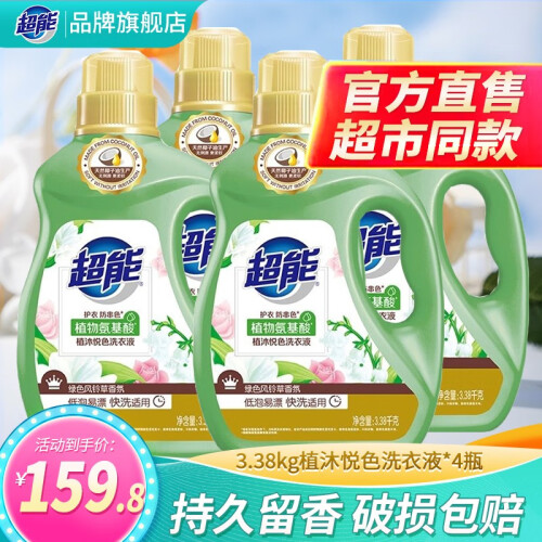 超能植沐悦色洗衣液3.38kg*4整箱27斤持久留香深层去渍护色家用实惠装
