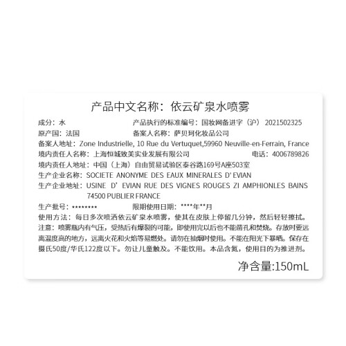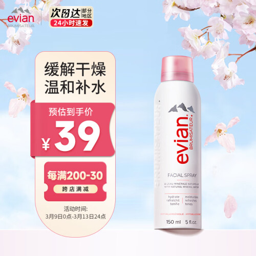 依云(evian)矿泉水喷雾150ml敏感肌 爽肤水补水保湿护肤品