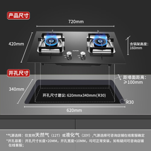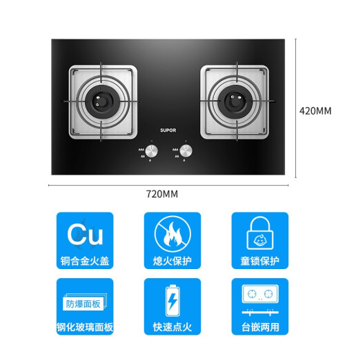 苏泊尔(SUPOR)燃气灶双灶天然气灶厨房液化气炉灶台式嵌入式两用灶具煤气炉具家用大火力5.0KW大火力炉灶煤气灶 【聚能锁热-方支架】5.0KW燃气灶B15 管道天然气(12T)